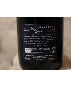 Elle a été pensée pour permettre au Pinot Noir (77%) et au Chardonnay (23%) de s'exprimer pleinement : Un dosage à moins de 4 grammes par litres, sans soufre et bien sûr toujours en culture biologique sur des raisins de la récolte 2011.